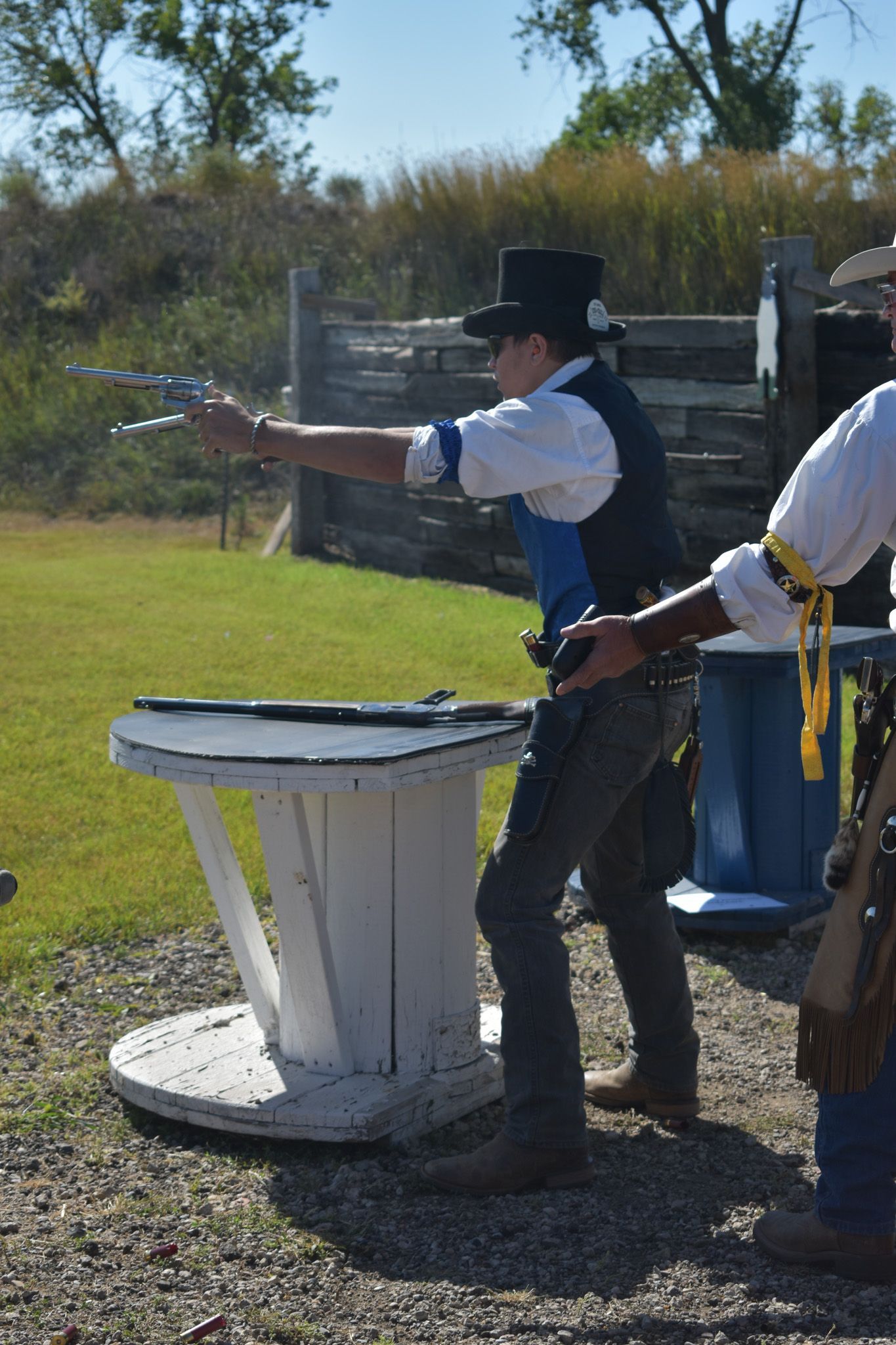 The Dakota RoughRiders are the Cowboy Action Shooters of the Bismarck-Mandan Rifle and Pistol Association. Our home range is located outside of Moffit, near Bismarck, the Capital City of North Dakota. We enjoy the sport of Cowboy Action Shooting. This is one of the fastest growing shooting sports in the world. There are shooting groups such as ours throughout the USA, Australia, New Zealand, Canada, the UK, Spain, the Netherlands, Germany, and the Czech Republic.